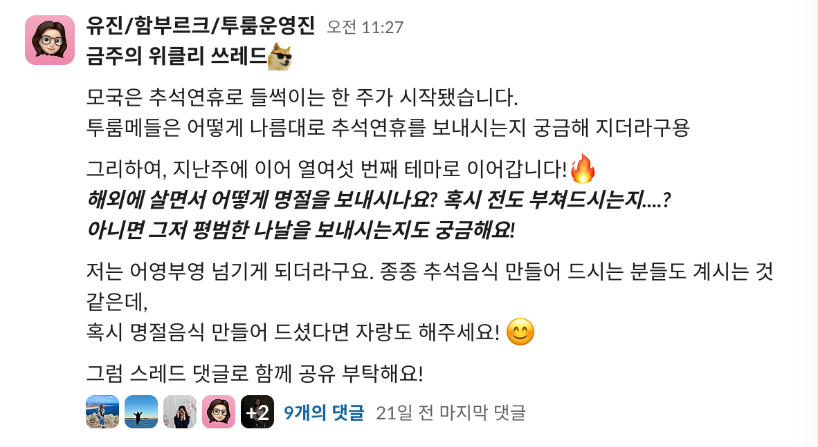 * ๊ฐ ๋ชจ์ ๊ณต์ง๋ ์ฌ๋ ์๋ชจ์ ์ฑ๋์์ ํ์ธํ ์ ์์ด์.